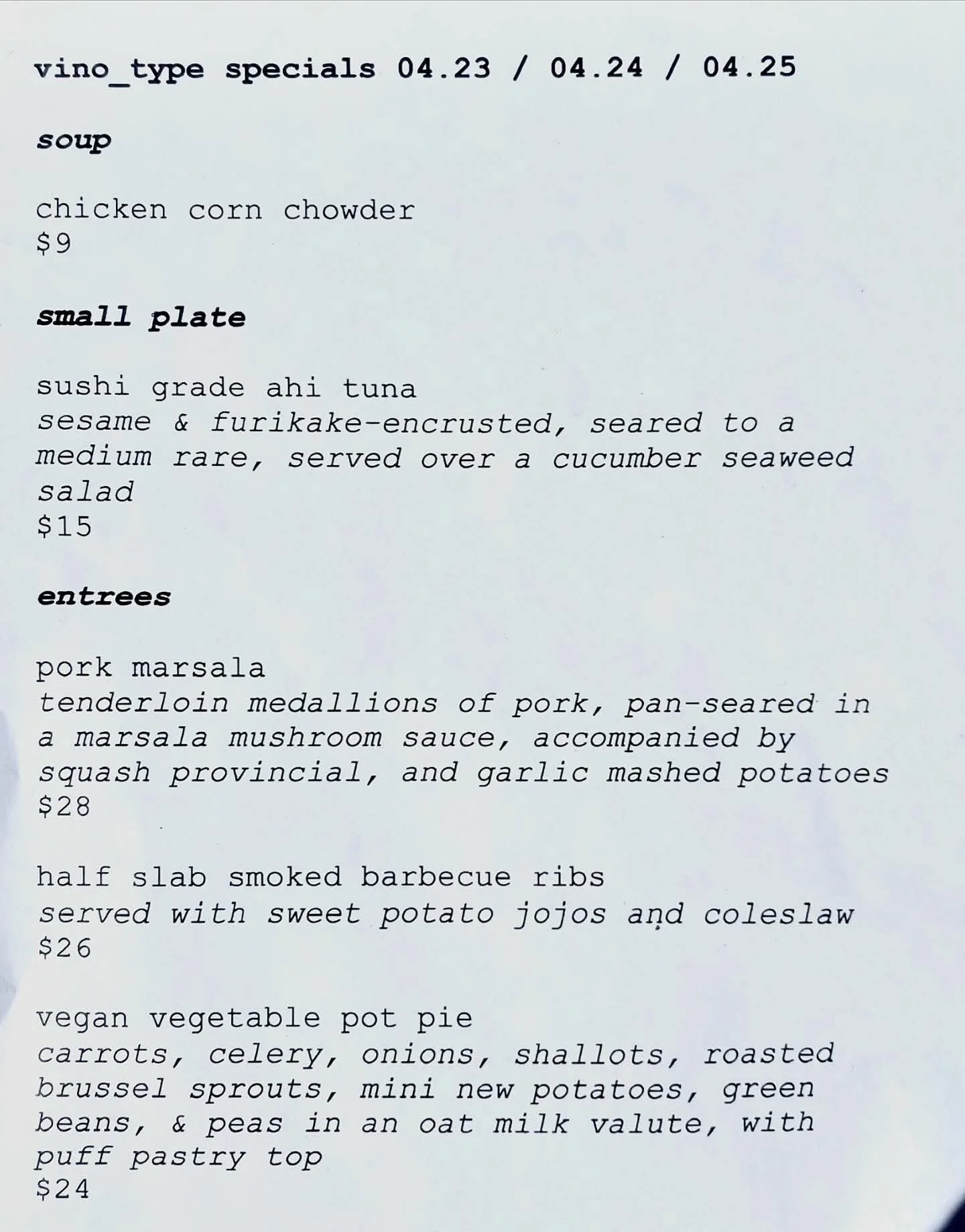 spring menu our specials change weekly come try them before they disappear Please call(440)729-7303for reservations