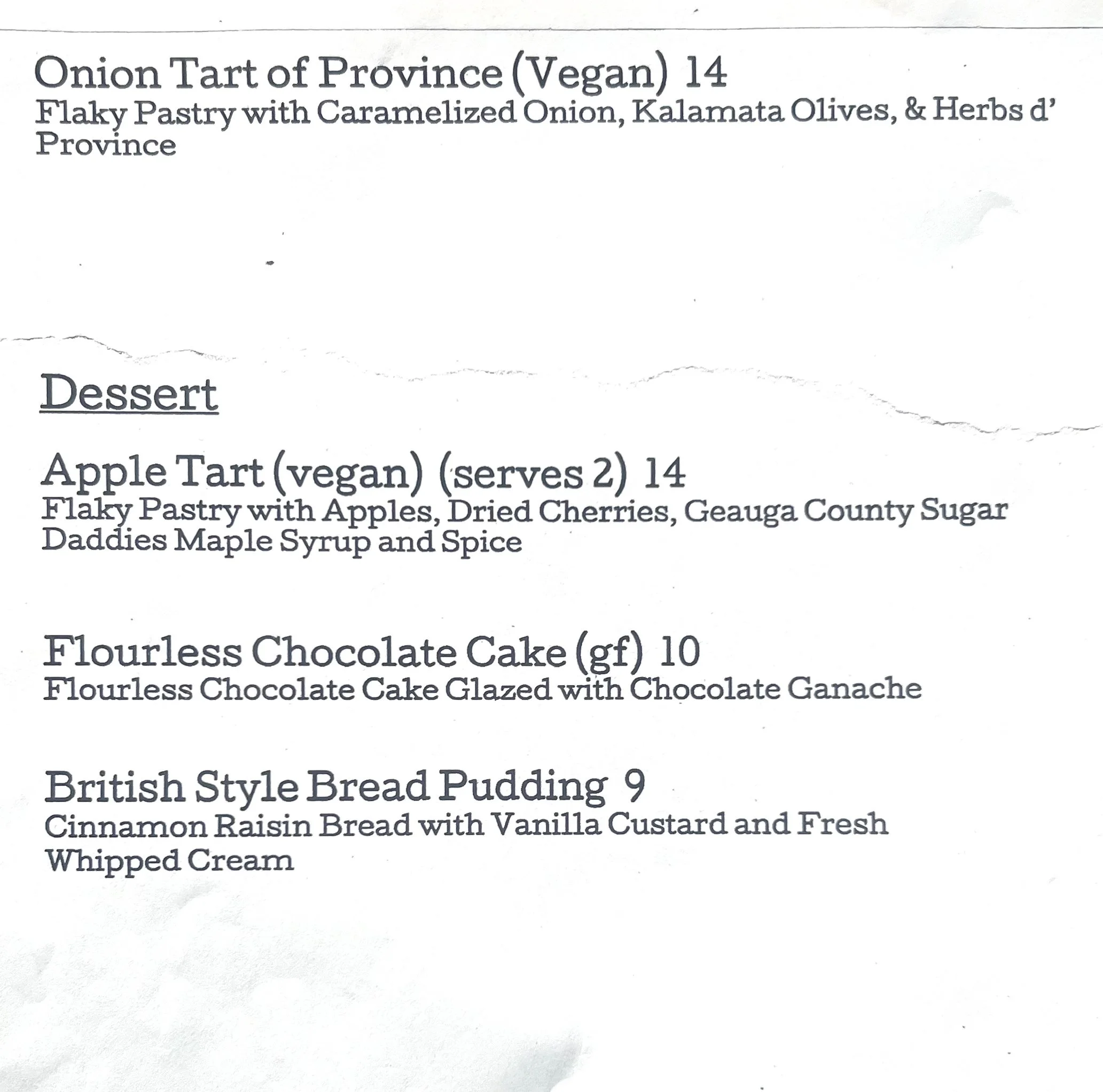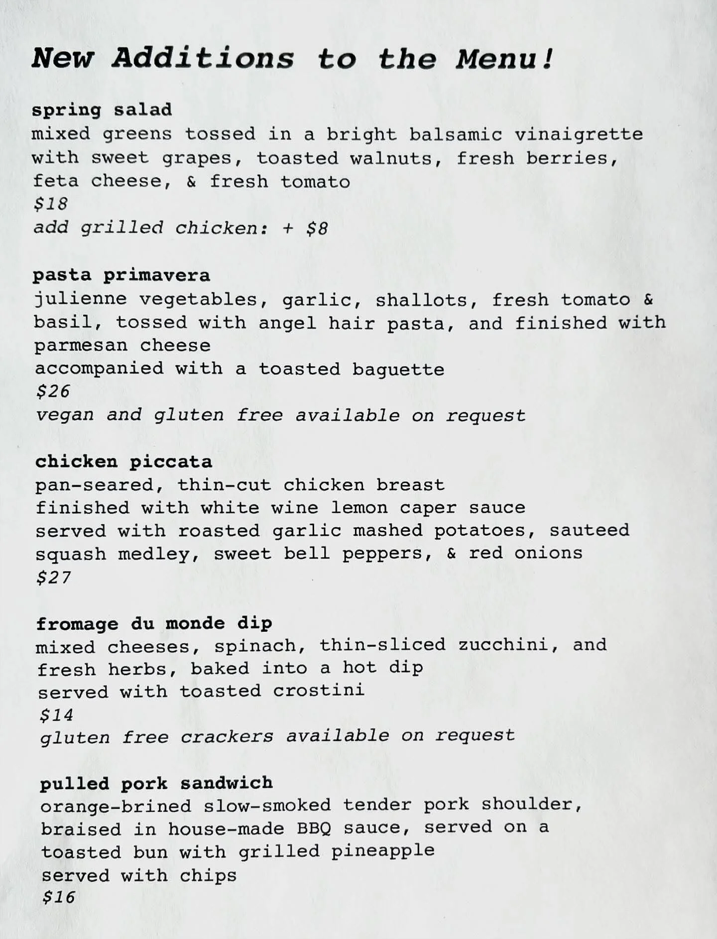 winter menu ask about our specials, we would love to tell you how special they are Please call(440)729-7303for reservations